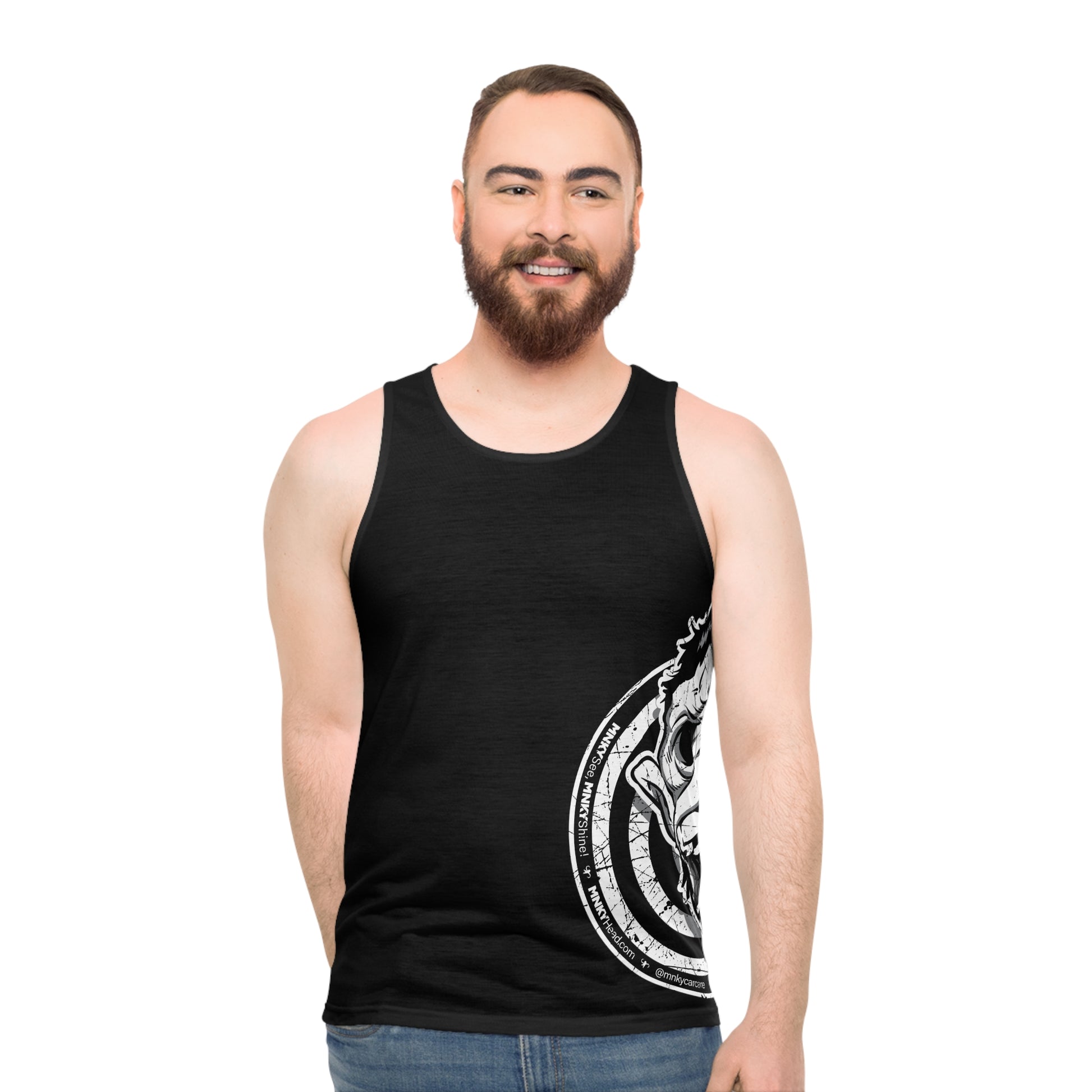 So, whether you're lounging, strolling, or just monkeying around, do it with the laidback charm of our "Chillin' MNKY Tank." It's the tank top that's cooler than a cucumber, and way more stylish too!